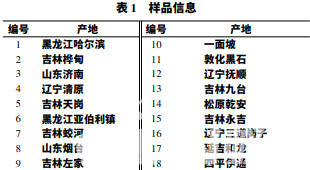 Vector 33 型傅立葉變換紅外光譜儀 ( 德國 Bruker 公 司) ; DZF-6050 型真空干燥箱 ( 上海精宏實驗設備有限公 司) ; AB-135-S 型電子天平 ( 梅特勒-托利多儀器上海有限 公司) ; FZ102 微型植物試樣粉碎機 ( 北京市永光明醫(yī)療儀 器廠) 。溴化鉀 ( 光譜純) 。兩頭尖藥材經(jīng)長春中醫(yī)藥大學 肖寄平教授鑒定均為毛莨科銀蓮花屬多被銀蓮花 Anemone raddeana Regel 的干燥根莖,信息見表 1。3 個混淆品為天 葵子、九節(jié)菖蒲、香附。